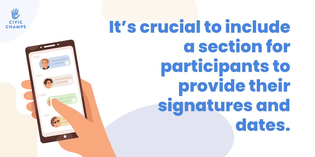- Release of Liability: A section where participants release your organization from liability for any injuries or damages incurred during their volunteer activities.