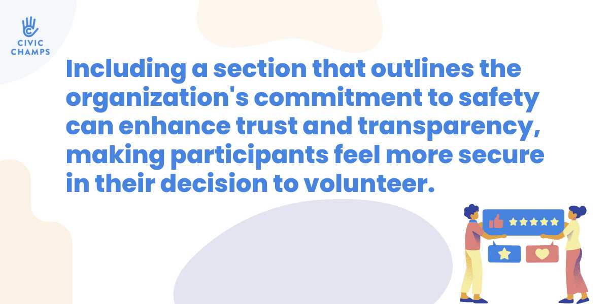 Moreover, including a section that outlines the organization's commitment to safety can enhance trust and transparency, making participants feel more secure in their decision to volunteer.